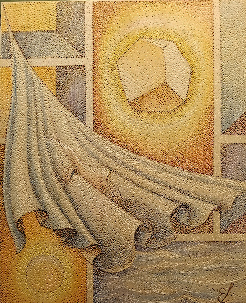 DELLA VERITA'. -L'ALCHIMIA E LA RICERCA DELLA PIETRA FILOSOFALE: L'essenza del pensiero alchemico è sintetizzato nella frase "nell'Uno il Tutto"; e nella tavola smeraldina di Ermete "Ciò che è in alto è come ciò che è in basso, e ciò che è in basso è come ciò che è in alto". La visione unitaria del Tutto implica la fondamentale unità del cosmo e e dei suoi quattro elementi (la Tetragonia di Empedocle), di conseguenza, totalità diventa sinonimo di completezza. A livello teologico l'unità del Tutto significa l'identificazione individuo-divinità. -ARNALDO DA VILLANOVA nel suo "De secretisa Naturae, stabilisce un parallelo tra la morte e la resurrezione di Cristo secondo la tradizione Cristiana, da un lato, e le due principali fasi alchemiche dall'altro: l'iniziale Nigredo che vede la morte della prima materia, cioè l'adepto e l'ultima la rubedo, che ne segna la rinascita sotto forma di pietra filosofale. ANCHE PIETRO BONO DA FERRARA (1330) vede una corrispondenza tra l'esito del magistero alchemico e la rivelazione divina; per lui, come per tutto il pensiero alchemico trecentesco, "l'Alchimia è sopra la natura e divina". -GLI ARTISTI ALCHIMISTI DEL RINASCIMENTO (Cosmè Tura, Leonardo, Michelangelo, Durer, Parmigianino, Beccafumi, Giorgione, Lorenzo Lotto, Guercino, ecc..., seguono le indicazioni di Arnaldo e Pietro.....ed io con loro. L'immortalità è conoscenza, è il riconoscimento dell'unità del Tutto. E' la consapevolezza dell'aspetto complementare e non conflittuale di ogni dualità (questo è l'insegnamento della luce Divina espressa nell'Aleph) -I FILI DELLA SPIRITUALITA' NELLA MIA ARTE SONO...:-Platone e il Timeo, lo Sefer Yetzirah, il Quarto Vangelo di Giovanni, il Terzo libro di Enoch, Arnaldo da Villanova, Pietro Bono da Ferrara, Gioacchino da Fiore e la nuova età dello Spirito, Pico della Mirandola. -LA MIA ESPRESSIONE ALCHEMICA: ....E LE MIE OPERE ISPIRATE ALLE VELATURE LEONARDESCHE (PDF) Dalle velature di Leonardo alle mie velature cesellate la distanza sembra breve. L'utilizzo di una tecnica complessa e raffinata da un senso di leggerezza e spiritualità a chi osserva l’opera grazie al rapporto che l’opera stessa instaura con la luce. La luce sfiorando la superficie della tavola lignea mette in evidenza la leggerezza dei toni e dei passaggi cromatici che sembrano velature ma in realtà sono soltanto l’insieme di bruciature e forature effettuate sulla pelle del legno a caldo (pirografo) e a freddo (dremmel) e poi unite ai pastelli colorati che vengono fissati a cera liquida. La superficie dell’opera così preparata viene poi modellata e velata dall’autore grazie ad una miriade di piccoli incavi che la luce sposa rendendo la materia sua complice in un legame inscindibile dagli effetti simili alle velature leonardesche. Le velature che Leonardo creava con i polpastrelli delle dita sono il medium fra la luce e il colore, se durante un restauro si asportano le velature l’effetto pittorico leonardesco perde quella caratteristica primaria che il il matrimonio con la luce produce e rende all’opera quel fascino e quel mistero che ritroviamo oggi solo nelle opere non restaurate o pulite. |